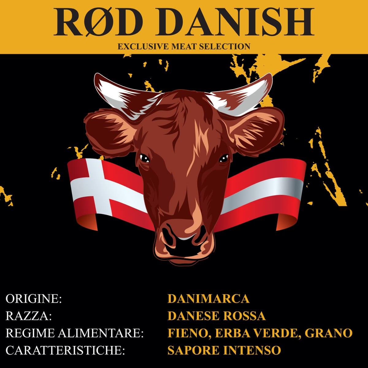 Rod Danish è il nome che abbiamo dato alla nostra selezione di Danese Rossa, pregiata carne dalla tenerezza unica e dal gusto inconfondibile. Originaria della Danimarca, si ciba di fieno, erba verde e grano. Ha un sapore intenso, ricco e particolare accentuato dalla giusta proporzione di grasso intramuscolare e dal colore rosso acceso che la contraddistingue.